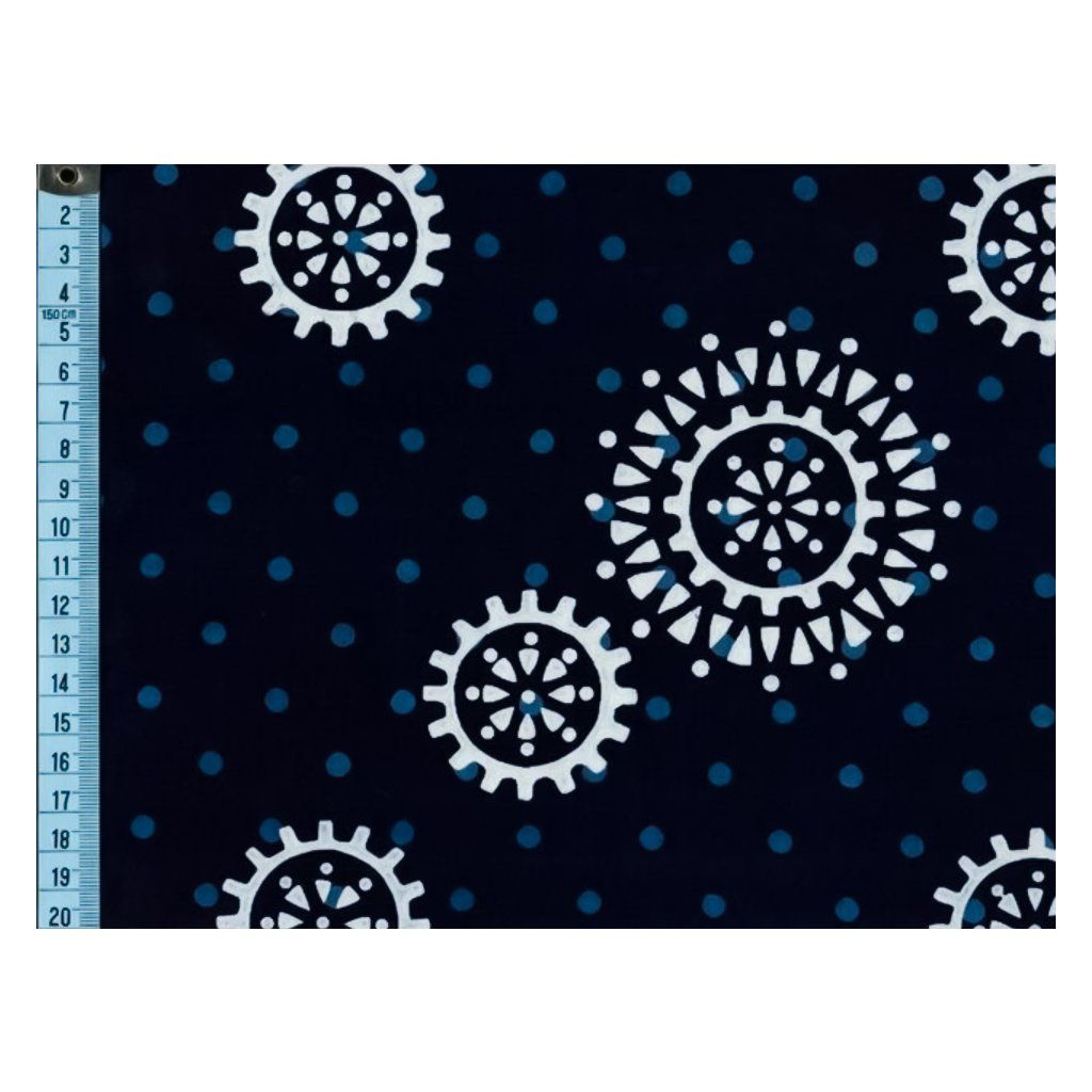 Metráž dvoubarevně potištěná Ozubená kola a menší puntíky