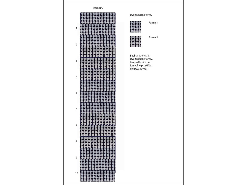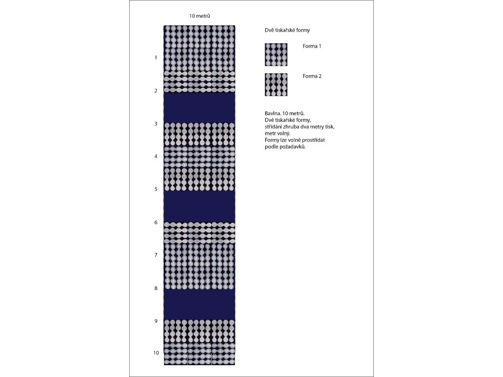 Metráž modrotisku šíře 132cm vzor housenky-pole