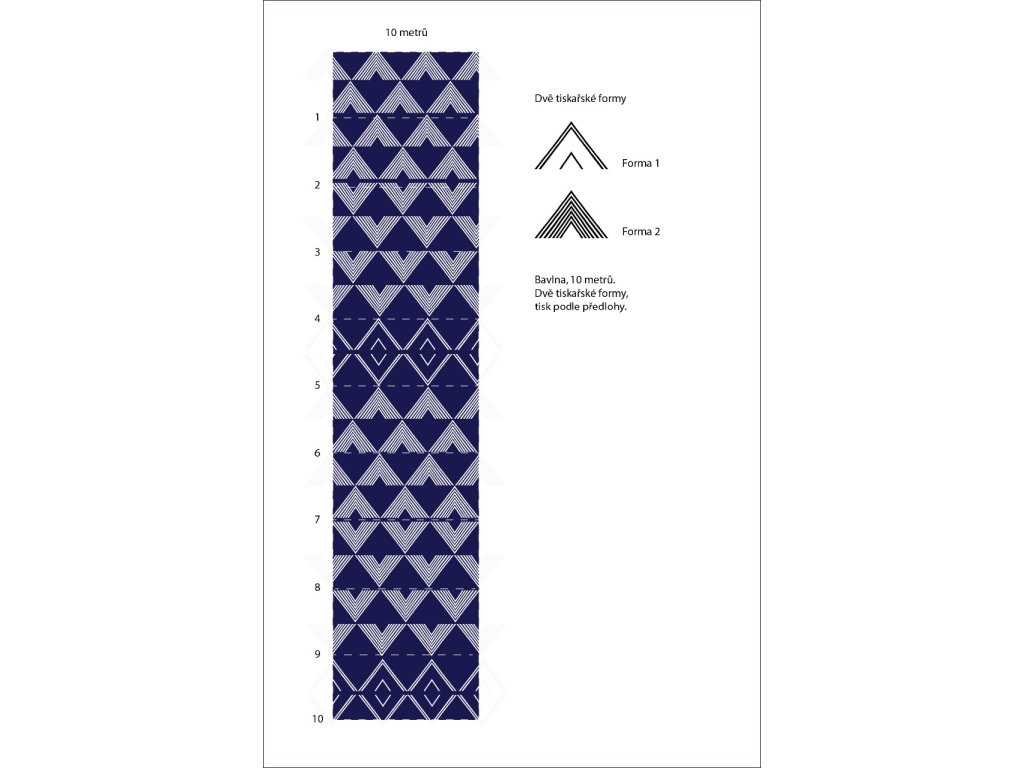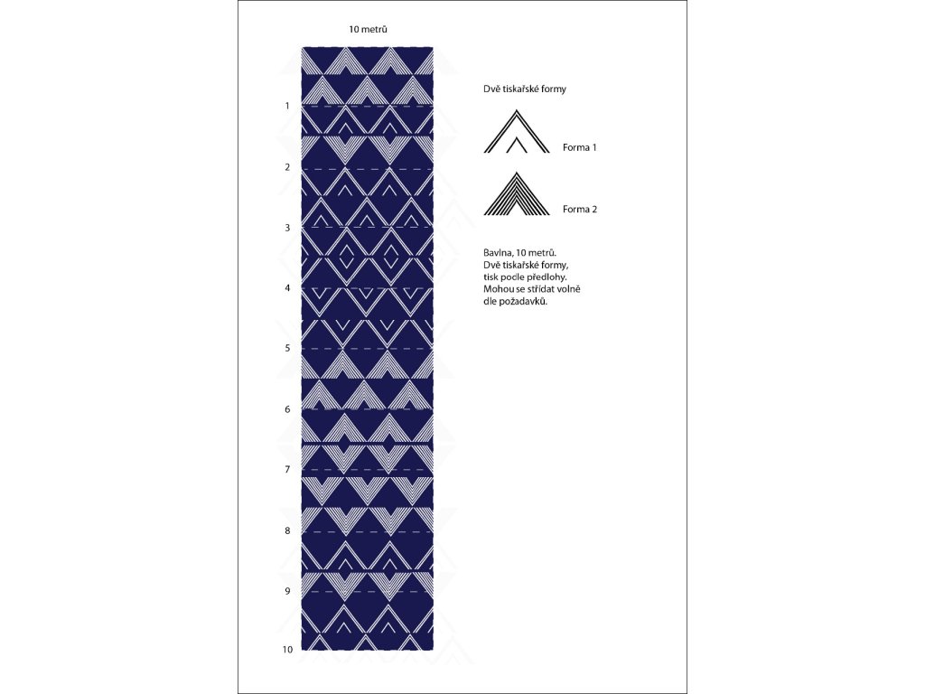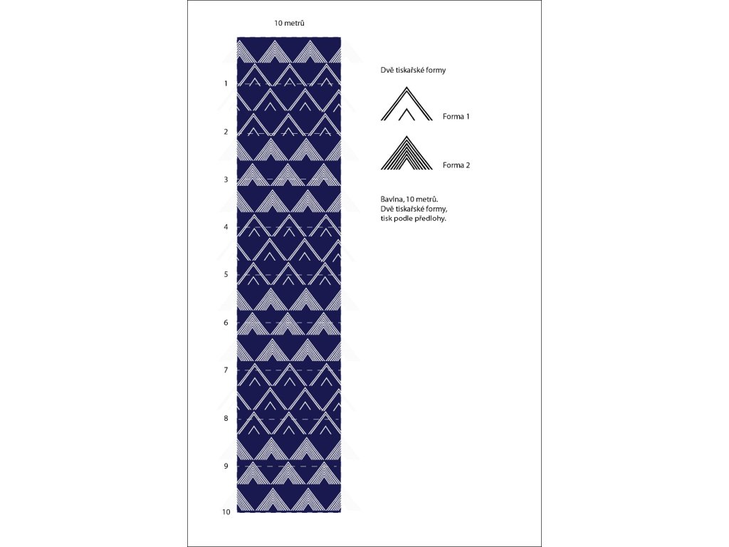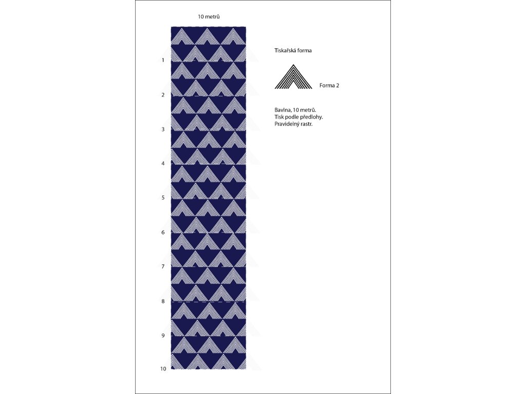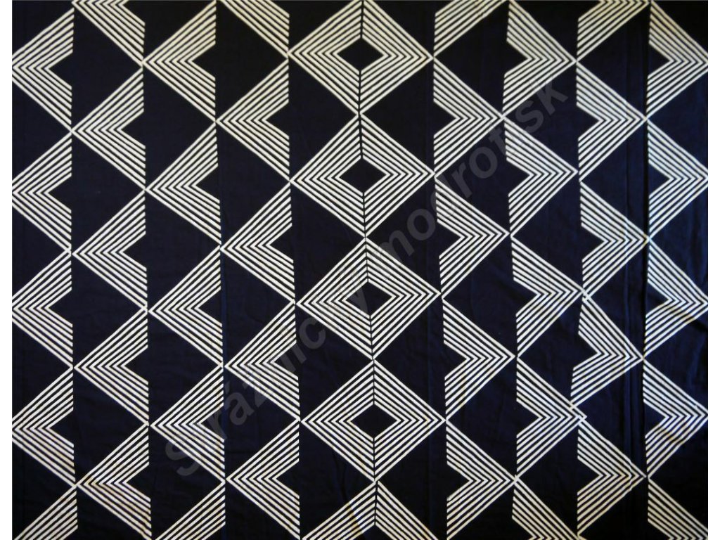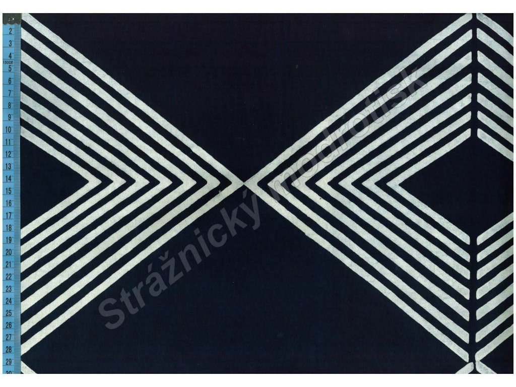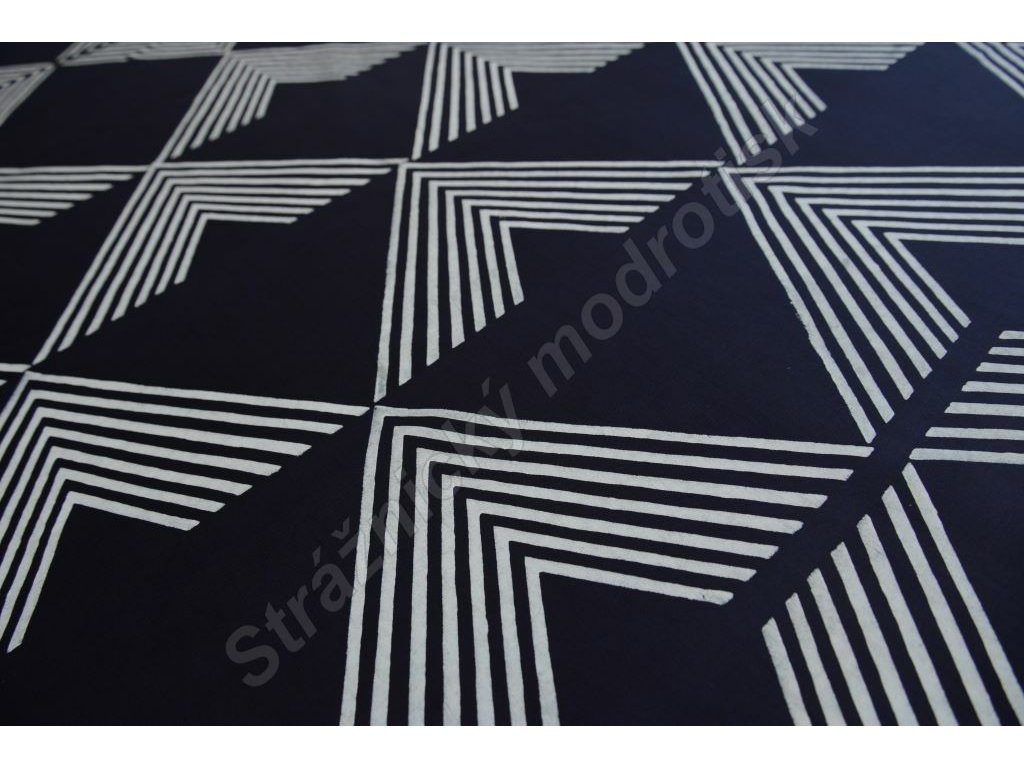 Metráž modrotisku šíře 132cm vzor trojúhelníky-kopce