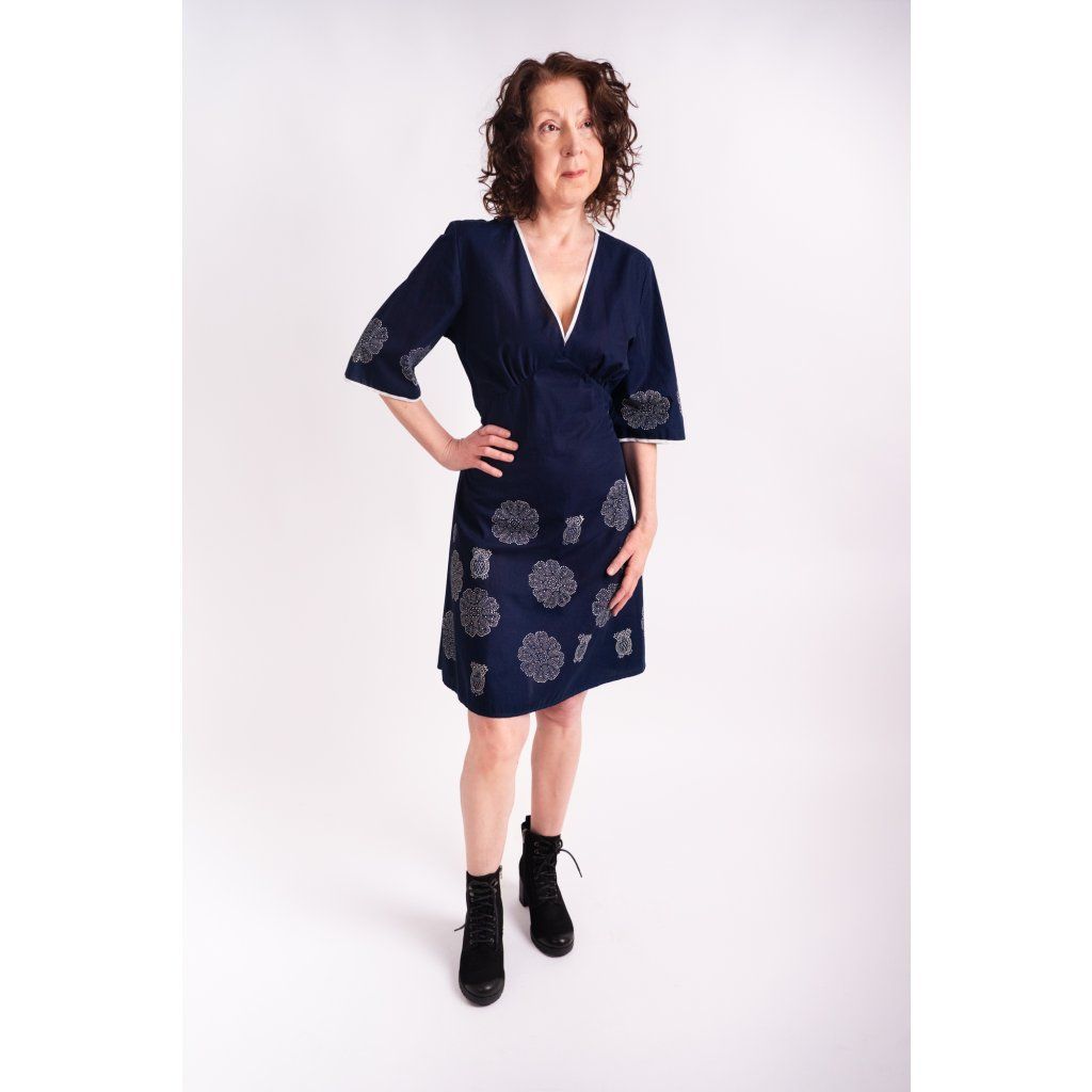 Šaty s délkou po kolena mají velmi pohodlný střih a díky bohatému šněrování na zádech můžete komfortně polohovat jejich velikost a sedí tak více typům postav. V obou bocích jsou opatřeny kapsami. Šaty jsou vhodné i pro použití bordurového tisku.